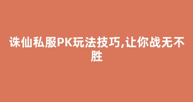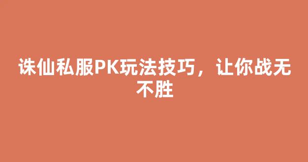 诛仙私服PK玩法技巧,让你战无不胜