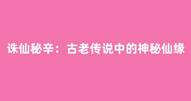 诛仙秘辛:古老传说中的神秘仙缘
