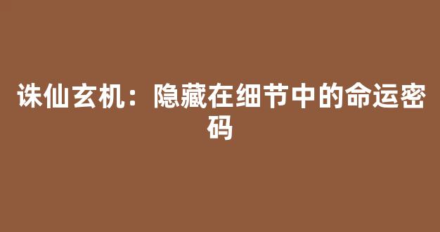 好的,下面是按照您的要求生成的关于《诛仙玄机:隐藏在细节中的命运密码》的文。