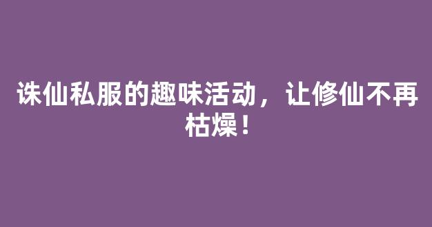 明白,我将按照您的要求为您生成一篇诛仙私服的趣味活动,让修仙不再枯燥!的文: