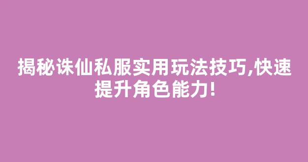 揭秘诛仙私服实用玩法技巧,快速提升角色能力!
