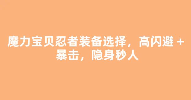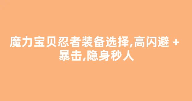 魔力宝贝忍者装备选择指南,高闪避 + 暴击,隐身秒人