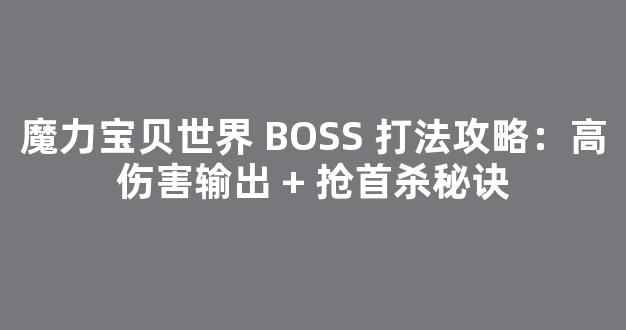 魔力宝贝世界BOSS打法攻略:高伤害输出 + 抢首杀秘诀