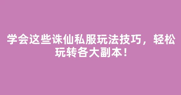 学会这些诛仙私服玩法技巧,轻松玩转各大副本!