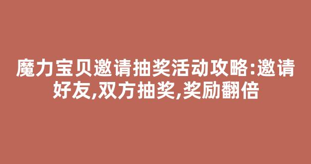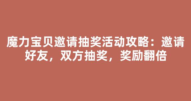 魔力宝贝邀请抽奖活动攻略:邀请好友,双方抽奖,奖励翻倍